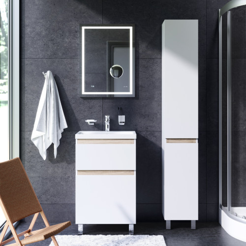 Зеркало AM.PM Gem 55 с LED-подсветкой, часами и косметическим зеркалом