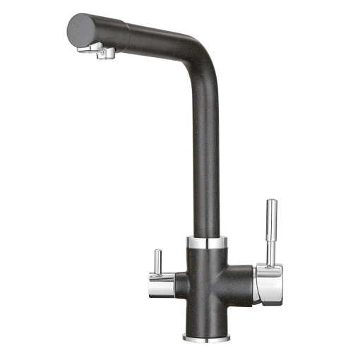Смеситель для кухни Granula GR-2015 сочетает в себе сразу два канала: для проточной и для фильтрованной воды. Это позволяет избежать установки отдельного крана под фильтр. Смеситель изготовлен из высококачественной латуни. Установка крана производится с помощью гибкой подводки.