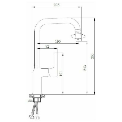 Смеситель для кухни бренда Haiba. Изготовлен из латуни. Укомплектован аэратором. Гибкая подводка 40 см. С поворотным изливом.