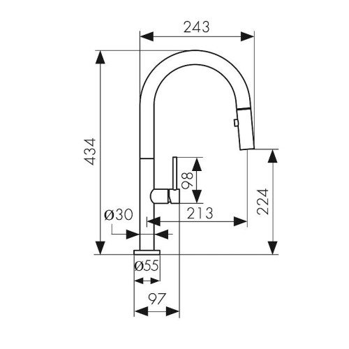 * Расположение рычага сбоку * Излив поворотный, высокий * Картридж Ø35