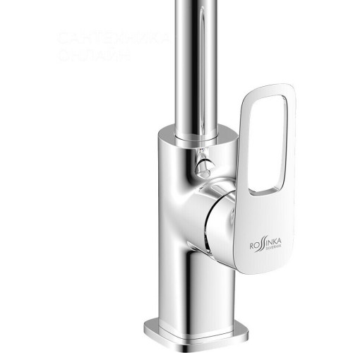Смеситель RS46-23 представляет российский производитель Rossinka. Изготовлен из латуни, что обуславливает великолепные эксплуатационные характеристики. Для придания зеркального блеска нанесено хромовое покрытие, устойчивое к появлению царапин и истиранию. Керамический картридж бесшумно смешивает горячую и холодную воду до оптимальной температуры. Удобство захвата рычага обеспечивает отверстие. Высокий излив позволяет с комфортом вымыть габаритную посуду и наполнить емкости водой. Пластиковый аэратор с функцией самоочищения формирует мягкую и ровную струю без брызг.