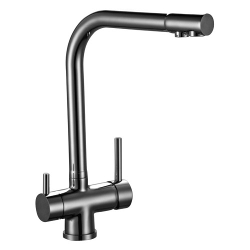 В комплекте: * Пластиковый аэратор для водопроводной воды с функцией легкой очистки * Пластиковый аэратор для питьевой воды с функцией легкой очистки * Керамический картридж 40 мм * Керамическая вентильная головка * Гибкая подводка 40 см - 2 шт. * Присоединительная группа для горизонтального крепления * Переходник для подключения шланга от фильтра с питьевой водой * Металлические рукоятки