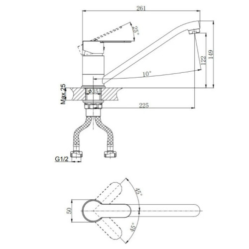• Картридж с керамическими пластинами D-35. • Пластиковый аэратор с латунным корпусом. • Универсальная присоединительная группа для установки на горизонтальную поверхность. • Гибкая подводка с латунными гайками 40 см - 2 шт. • Металлическая ручка.