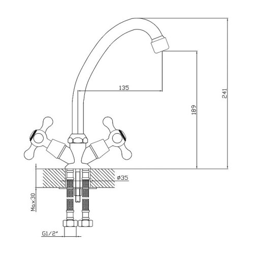 Смеситель VIKO V-1303 для кухни с двумя рукоятками в современном стиле.
