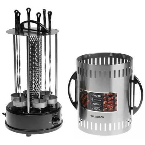 Электрошашлычница предназначена для приготовления, мяса, сосисок, овощей. Благодаря небольшим параметрам использовать шашлычницу можно на любой удобной поверхности.Тип устройства электрошашлычница. Основной цвет нержавеющая сталь с черным Потребляемая мощность, Вт 1000. Материал корпуса металл/пластик. Количество шампуров 6. Расположение шампуров вертикальное. Дисплей нет. Регулировка температуры нет. Таймер отключения нет. Количество поворотов в минуту 2.