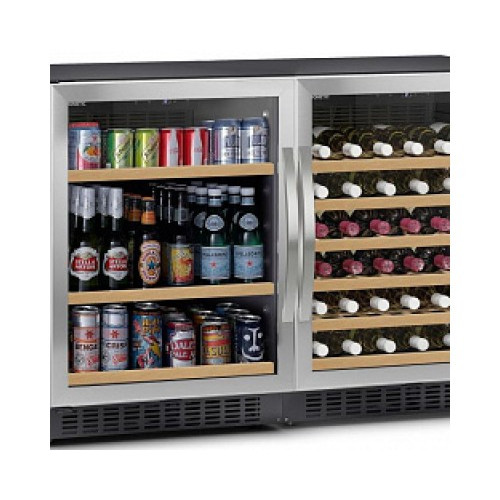 | Дополнительные особенности | Подходит для ресторана/Вместимость: 112 банок 0/33-0/5 л и бутылок 0/33 л в левой части и от 50 до 64 бутылок типа Бордо в правой части./Возможность встраивания: Под столешницу/Левая зона: от 5°C до 20°C/Правая зона: от 5°C до 20°C/Стандартная комплектация: 2 резервуара для воды/Индикация температуры/Режим: Тихая работа/Функция памяти установленного режима охлаждения (при отключении электропитания заданный режим сохраняется)/Закаленное стекло/Настраиваемый по высоте цоколь/Регулировка высоты за счет выкручивания ножек до 8 см/Задняя стенка винного шкафа абсолютно плоская (можно ставить вплотную к стене)/Мощность подключения: 200 Вт |