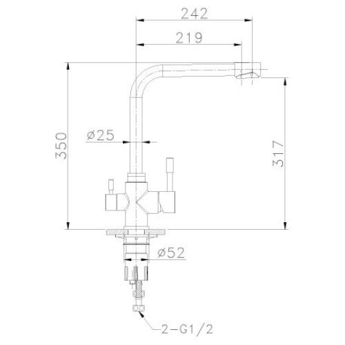 - Излив: длина 242 мм, высота 317 мм
