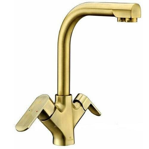Удобное управление благодаря одной рукоятке включения. Современные формы рукояток, которые придают ему строгость. Данная модель очень популярна в продаже. Имеется подключение под фильтр (питьевая вода). Не нужно выводить отдельный кран для питьевой воды т.к. внутри смесителя проходит магистраль для нее и ее легко подключить. Боковая рукоятка слева активизирует подачу питьевой воды.