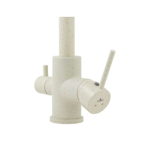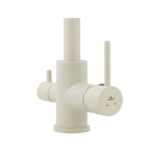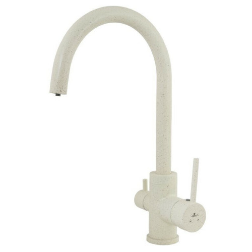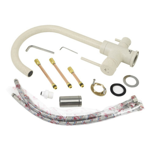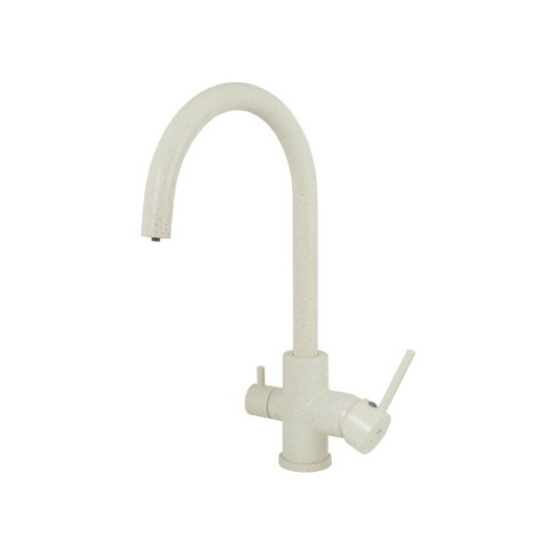 Смеситель Kaiser 26744-11 из коллекции Merkur с подключением под фильтр. Смеситель имеет сдвоенный аэратор, внутри излива проходит трубка для фильтрованной воды, что исключает возможность смешивания с проточной водой. Для подачи питьевой воды на корпусе смесителя размещен рычаг.  Преимущество совмещенных смесителей заключается в том, что не нужно делать дополнительных отверстий на мойке и устанавливать отдельный кран для питьевой воды.
