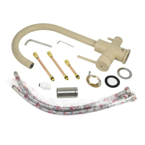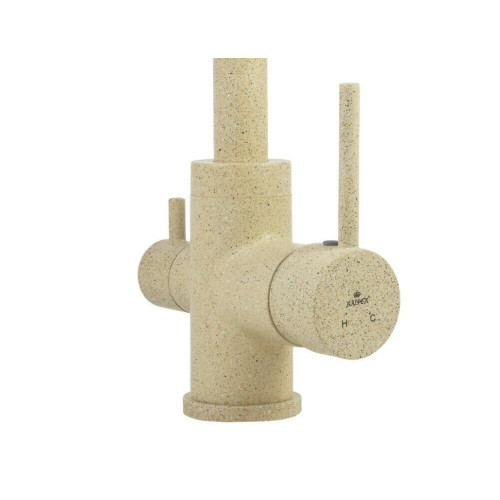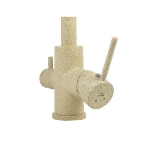 Смеситель Kaiser 26744-16 из коллекции Merkur с подключением под фильтр. Смеситель имеет сдвоенный аэратор, внутри излива проходит трубка для фильтрованной воды, что исключает возможность смешивания с проточной водой. Для подачи питьевой воды на корпусе смесителя размещен рычаг. Преимущество совмещенных смесителей заключается в том, что не нужно делать дополнительных отверстий на мойке и устанавливать отдельный кран для питьевой воды.