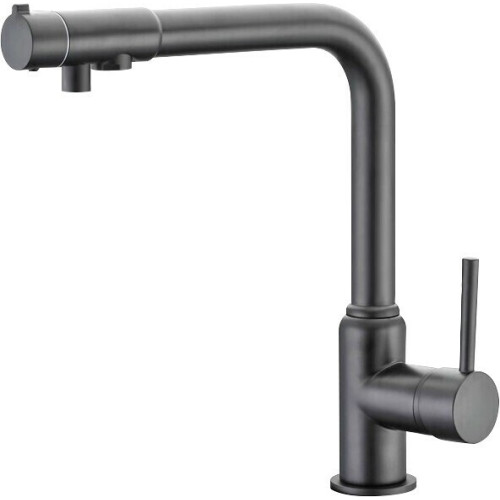 Особенность модели заключается в сдвоенном изливе, внутри которого проходят две трубки, для питьевой и проточной воды. Два аэратора для раздельного выхода проточной и фильтрованной воды, исключают возможность их смешивания. Подача питьевой воды осуществляется переключателем на конце излива. Преимущество совмещенных смесителей заключается в том, что не нужно делать дополнительных отверстий на мойке и устанавливать отдельный кран для питьевой воды.