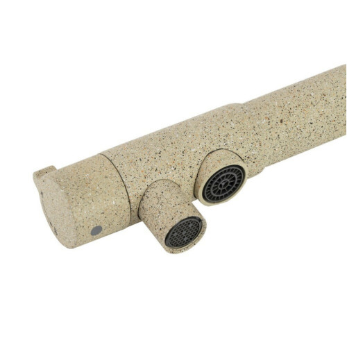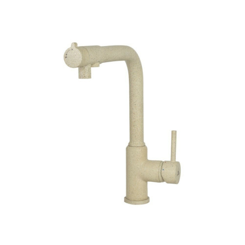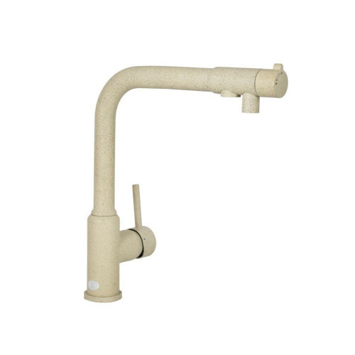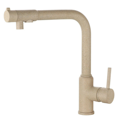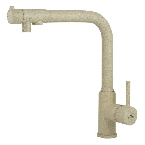 Смеситель Kaiser 13044-16 из коллекции Teka совмещен с краном для питьевой воды. Особенность модели заключается в сдвоенном изливе, внутри которого проходят две трубки, для питьевой и проточной воды.  Два аэратора для раздельного выхода проточной и фильтрованной воды, исключают возможность их смешивания. Подача питьевой воды осуществляется переключателем на конце излива. Преимущество совмещенных смесителей заключается в том, что не нужно делать дополнительных отверстий на мойке и устанавливать отдельный кран для питьевой воды.