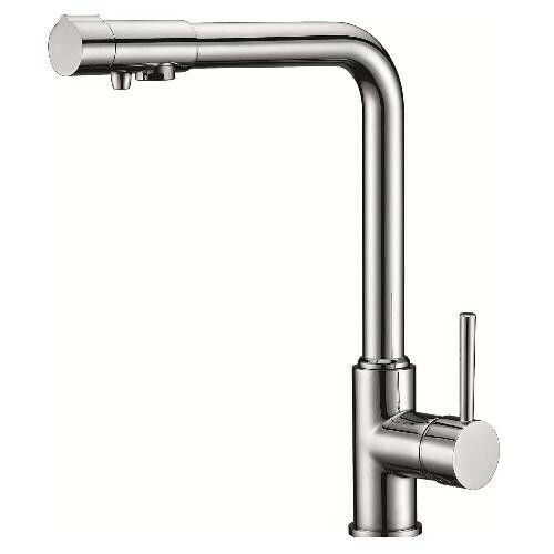 Удобное управление благодаря одной рукоятке включения. Современные формы, интересный дизайн. Имеется подключение под фильтр (питьевая вода). Не нужно выводить отдельный кран для питьевой воды т.к. внутри смесителя проходит магистраль для нее и ее легко подключить. В верхней части смесителя переключатель, который активизирует подачу питьевой воды.