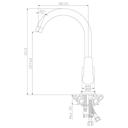 * Пластиковый аэратор с изменяемым углом подачи воды * Керамический картридж 35 мм * Гибкая подводка 35 см – 2 шт. * Присоединительная группа для горизонтального крепления * Металлическая рукоятка