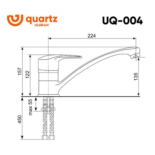 Ulgran Quartz UQ-004 - удобный классический кухонный смеситель с низким поворотным изливом. Материал корпуса выполнен из высококачественной латуни, а окрашивание под искусственный камень в цвет мойки Ulgran Quartz выполняется на собственном производстве, что позволяет идеально попасть в фирменный цвет Ulgran Quartz. В качестве керамического картриджа используется известный бренд Wanhai диаметром 40 мм с высокой пропускной способностью в 500 тысяч циклов открывания-закрывания.