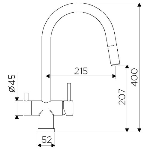 - Излив: длина 215 мм, высота 207 мм