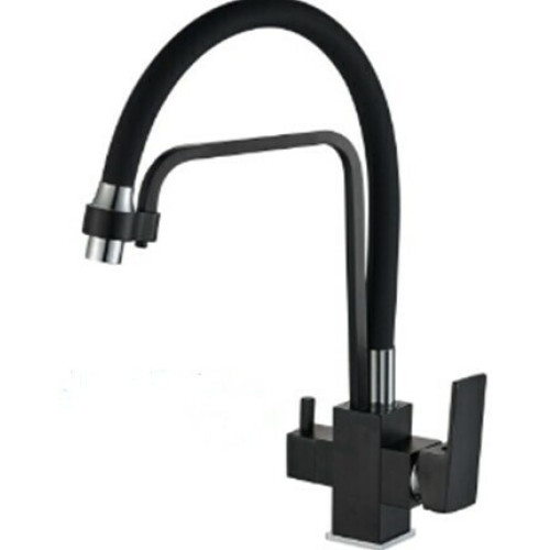 Смеситель для кухни Haiba HB76857 черного цвета имеет стильный дизайн. Он позволит регулировать поток воды и получать воду требуемой температуры при смешивании горячей и холодной воды.
