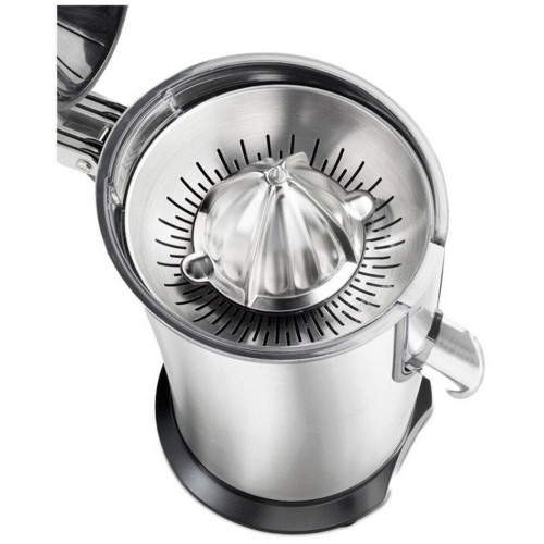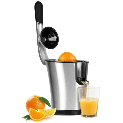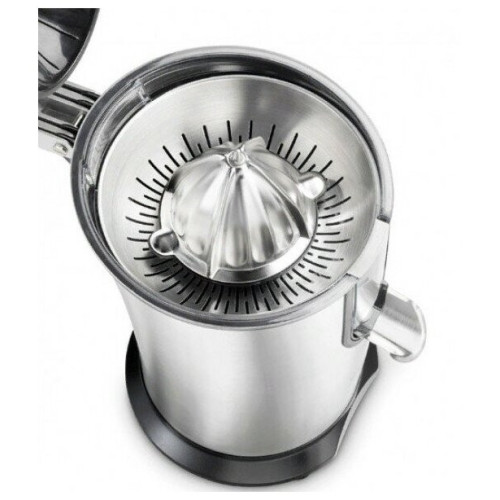 Разрежьте цитрус пополам и поместить мякотью на конус. Опустите вниз ручку, чтобы прижать плод, конус начинает вращение, а сок будет равномерно и полностью выжат. Мякоть собирается в сито, а сок стекает в подставленный стакан, чашку или любую другую емкость. Система капля-стоп предотвращает попадание капель на стол. Сделайте домашний лимонад, выжимайте, апельсины, лаймы, грейпфруты и другие цитрусовые фрукты, чтобы получить вкусный и полезный напиток. Готовьте коктейли с фруктовым соком без термической обработки, в которых сохранятся все витамины и полезные вещества. Особенности: Соковыжималка не выскальзывает даже из влажных рук за счет покрытия ручки-пресс мягким прорезиненным материалом. Сито, в которое собирается жмых, сделано из нержавеющей стали, которая прослужит многие годы без повреждений от кислых лимонов или лаймов. Корпус из прочной стали оснащен прорезиненными ножками. В процессе эксплуатации двигатель мощностью 160 Вт практически не вибрирует и не шумит. Устройство быстро разбирается и промывается водой и моющими средствами. Технические данные: Материал: нержавеющая сталь Мощность: 160 Вт Автоматический старт Функция Капля-стоп Габариты: 20x31x32 см Вес: 2.7 кг