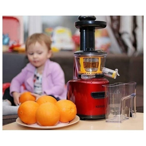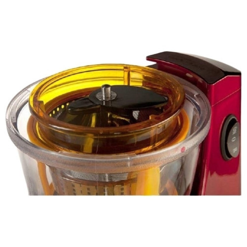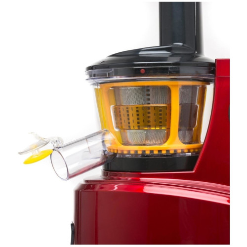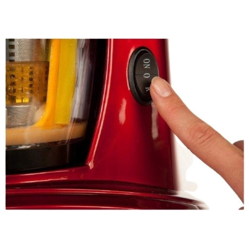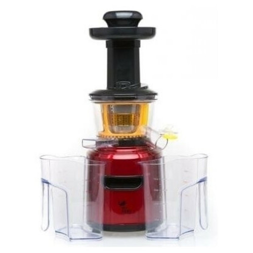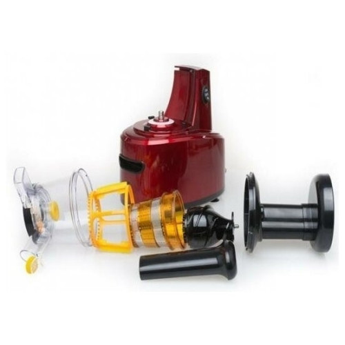 Тип соковыжималки: шнековая; Цвет корпуса: бордовый; Материал корпуса: пластик; Мощность: 150 Вт; Объём резервуара для сока: 1; Количество скоростей: 1; Регулировка содержания мякоти в соке: н/д; Съёмный резервуар для мякоти: да; Система прямой подачи сока: да; Приготовление фруктовых смесей: да; Защита от случайного включения: да; Защита от перегрева: нет; Органы управления: Механические; Прочие особенности и свойства: Индикатор уровня сока, Прорезиненные ножки, Отсек для сетевого шнура, Автоматическая очистка фильтра , Максимальная скорость вращения - 80 об/мин , Реверс - есть; Особенности: автоматический выброс мякоти; Размеры: 32x28.5x35 см; Вес: 4,2