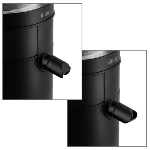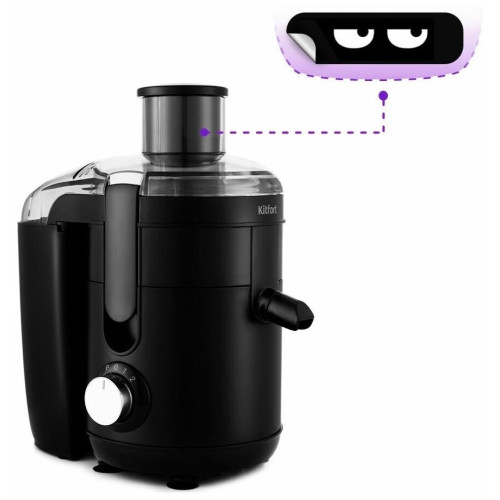 Соковыжималка Kitfort КТ-1126 Свежий и натуральный сок каждый день! Компактная и стильная центробежная соковыжималка КТ-1126 с широкой горловиной позволяет отжимать сок из фруктов, овощей и зелени с сохранением всех витаминов, аминокислот и минералов. Использует технологию отжима сока при помощи центрифуги. Регулировка скоростного режима КТ-1126 сначала измельчает продукт с помощью круговой тёрки. Затем он попадает в фильтр, где на оборотах 15000 об/мин сок отделяется от «сухого» тёртого продукта. Имеется 2 режима работы для отжима мягких и более твёрдых продуктов и импульсный режим. Главный секрет высокого качества получаемого сока Фильтр сделан из нержавеющей стали с пластмассовым каркасом, что делает его прочным и не подверженным коррозии. Фильтр выполнен по принципу центрифуги, что обеспечивает тщательный отжим. Он легко извлекается и устанавливается. Абсолютно безопасная работа В приборе установлен коллекторный двигатель переменного тока. Он развивает большую скорость (15000 об/мин), благодаря чему происходит эффективный отжим сока в центрифуге. Она не включится в неправильно собранном виде и с не установленными фиксаторами. Внимание к деталям Чаша, крышка и толкатель сделаны из пищевого пластика и хорошо выдерживают нагрузки, возникающие во время отжима. Контейнер плотно прилегает к каналу выхода жмыха, предотвращая мусор. Прозрачная крышка позволит следить за процессом. Полностью разборная конструкция Сборка и разборка занимает не больше 1 минуты. Все части соковыжималки легко протереть салфеткой или губкой. Расположение двигателя в верхней части моторного блока и прорезиненные ножки с присосками значительно снижают уровень шума и вибраций. Ни одной капли мимо! Готовый сок будет поступать в ёмкость только в случае, когда патрубок находится в открытом положении и повёрнут отверстием вниз. Отклеивающийся креативный стикер С нашей техникой очень легко подружиться, потому что она не только лёгкая и функциональная, но и будто живая с весёлыми глазами. Никого не оставит равнодушным! В любой момент вы можете отклеить этот стикер без вреда для поверхности.