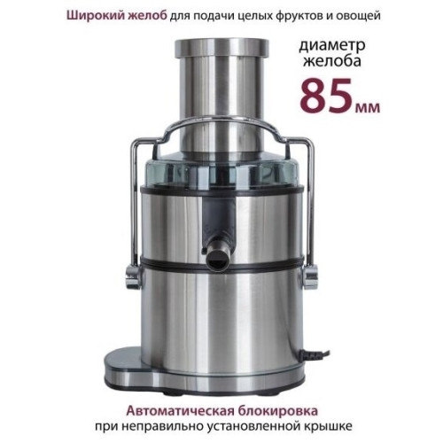 Тип управления: сенсорное Максимальная мощность, Вт 1000 Количество скоростей: 5 Скорость вращения, об/мин 18000 Импульсный режим работы: есть Диаметр загрузочного отверстия, см 8,5 Резервуар для сока с пеносепаратором: есть Емкость для сока, мл 1100 Емкость для мякоти, мл 2000 Автоматический выброс мякоти: есть Загрузка фруктов целиком: есть Автоматическая блокировка при неправильно установленной крышке: есть Прорезиненные ножки: есть LED подсветка кнопок: есть Дисплей: ЖК с подсветкой Комплектация: соковыжималка, гарантийный талон, инструкция на русском языке Материал фильтра: нержавеющая сталь Материал корпуса: нержавеющая сталь Цвет: серебристый с черным Электропитание, в Гц 220-240, 50