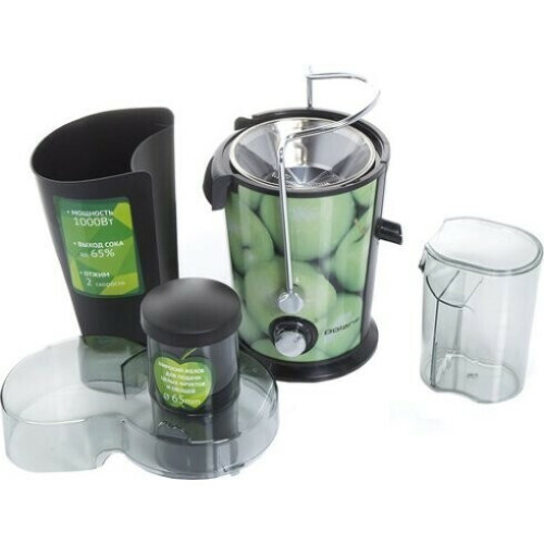 Благодаря широкому желобу для загрузки в соковыжималку Polaris Pea 1031 Apple можно отправлять сразу целые яблоки без предварительной нарезки. С помощью этой модели можно без труда приготовить освежающие фреши и из других плодов. Прибор с легкостью справится с твердыми и мягкими ингредиентами благодаря мощному мотору и двум скоростным режимам. Максимальное число оборотов центрифуги достигает 21000 об/мин, поэтому прибор позволяет приготовить даже морковный сок. Подача напитка осуществляется сразу в специальный стакан объемом 0,55 л, снабженный фильтром для пены и крышкой, задерживающей брызги. Жмых отводится в отдельный съемный отсек, который удобно мыть. Соковыжималка Polaris Pea 1031 Apple защищена от случайного включения. Рабочий цикл составляет не более 2 минут, но этого времени вполне достаточно, чтобы полностью наполнить емкость для напитка. Если температура моторного отсека приблизится к критической, сработает автоматическая блокировка, которая предохранит двигатель от перегрузки и поломки. Корпус изготовлен из нержавеющей стали, отличающейся прочностью и стойкостью к износу, что гарантирует продолжительный срок эксплуатации. Прорезиненные ножки надежно фиксируют Polaris Pea 1031 Apple на гладкой поверхности.