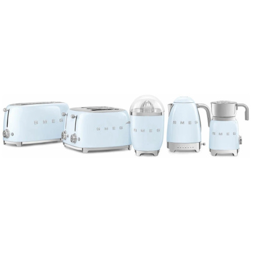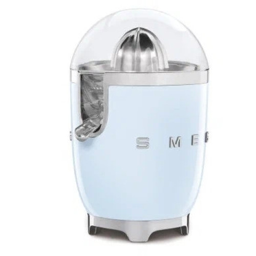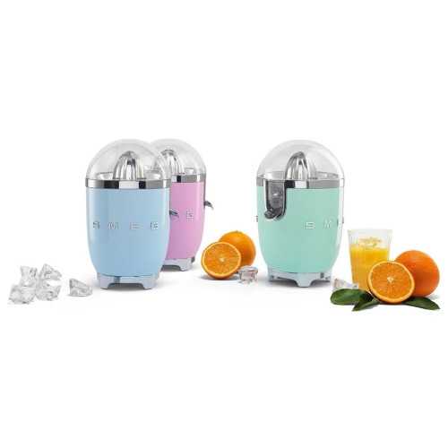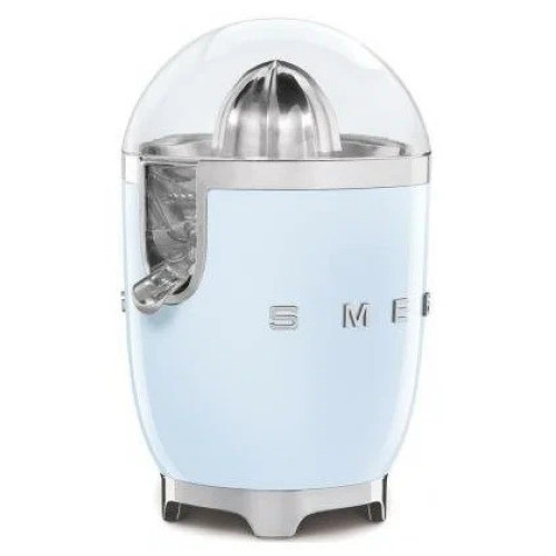 Smeg CJF01PBEU представляет собой стильную соковыжималку для цитрусовых. Она позволяет быстро и с комфортом получить натуральный сок из таких фруктов, как апельсины, мандарины, лимоны, грейпфруты и другие цитрусовые. Для удобства в модели предусмотрен носик-дозатор, который обеспечивает прямую подачу свежевыжатого сока прямо в стакан. Также он имеет противокапельную конструкцию. Дизайн Соковыжималка для цитрусовых от бренда Smeg выполнена в стиле 50-х годов XX века и будет отлично дополнять интерьер вашей кухни. Работа устройства основана на электромоторе мощностью 70 Вт. Питание модель получает от электросети посредством метрового кабеля, для которого в корпусе имеется специальный отсек для хранения. Соковыжималка выполнена из литого алюминия, имеет чашу и крышку из запатентованного брендом материала Tritan. Особенности: Стильный ретро-дизайн Подходит для большинства цитрусовых Мощный электромотор Удобный носик-дозатор Автоматическое включение и выключение Работа от сети