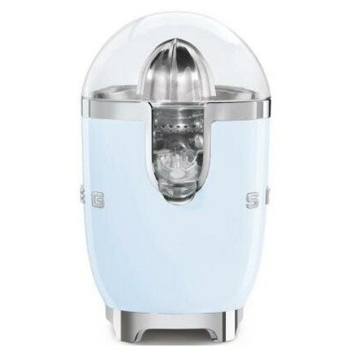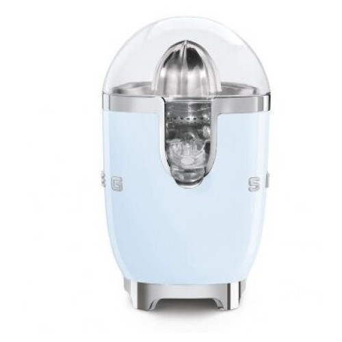 Smeg CJF01PBEU представляет собой стильную соковыжималку для цитрусовых. Она позволяет быстро и с комфортом получить натуральный сок из таких фруктов, как апельсины, мандарины, лимоны, грейпфруты и другие цитрусовые. Для удобства в модели предусмотрен носик-дозатор, который обеспечивает прямую подачу свежевыжатого сока прямо в стакан. Также он имеет противокапельную конструкцию. Дизайн Соковыжималка для цитрусовых от бренда Smeg выполнена в стиле 50-х годов XX века и будет отлично дополнять интерьер вашей кухни. Работа устройства основана на электромоторе мощностью 70 Вт. Питание модель получает от электросети посредством метрового кабеля, для которого в корпусе имеется специальный отсек для хранения. Соковыжималка выполнена из литого алюминия, имеет чашу и крышку из запатентованного брендом материала Tritan. Особенности: Стильный ретро-дизайн Подходит для большинства цитрусовых Мощный электромотор Удобный носик-дозатор Автоматическое включение и выключение Работа от сети