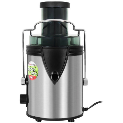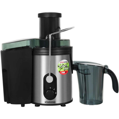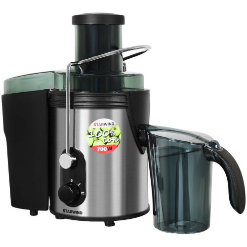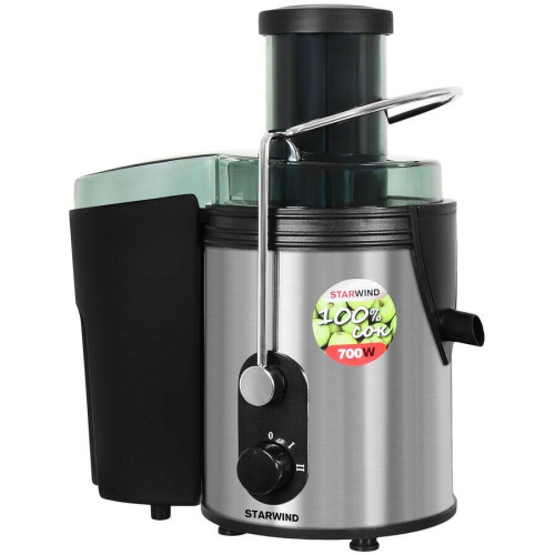 Удобная в использовании соковыжималка StarWind SJ 2424 отлично справляется с переработкой овощей и фруктов. Предусмотрено механическое управление системой и два скоростных режима. Центробежный принцип работы обеспечивает высокую производительность инструмента. Пеносепаратор гасит пену в готовом напитке. Предусмотрен автоматический выброс мякоти. Резиновые наконечники на ножках предотвращают скольжение устройства по поверхности. С помощью сетчатых фильтров в соковыжималке StarWind SJ 2424 можно регулировать количество мякоти в соке. Круглая горловина позволяет загружать крупнокусковое сырье. Мякоть и сок распределяются по разным резервуарам. Производителем предоставляется гарантия на 12 месяцев.