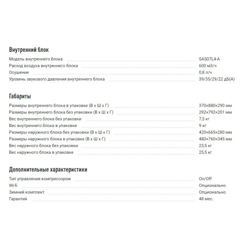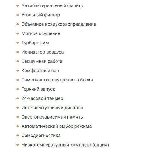 настенная сплит-система, режимы работы: охлаждение / обогрев, мощность охлаждения: 2300 Вт, пульт ДУ, Автоматическое поддержание температуры. Гарантия 5 - лет. Уровень шума - 22 Дб