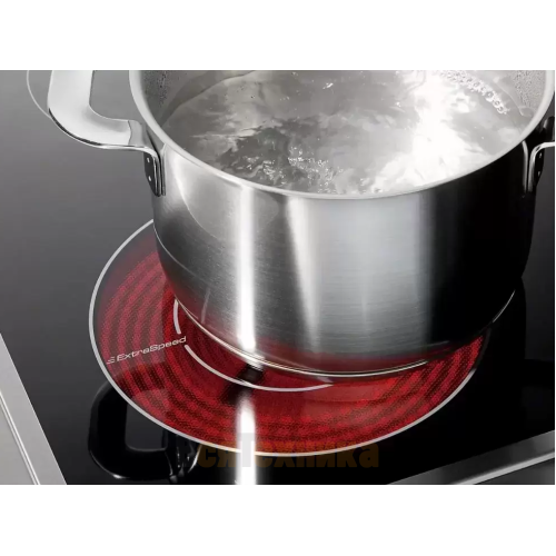 - Мощная индукционная конфорка (Boost): Обеспечивает молниеносный нагрев благодаря функции экстрабыстрого кипячения. Мощность в режиме Boost позволяет вскипятить литр воды за рекордно короткое время.