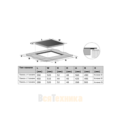 | Размеры ниши для встраивания (ШхГ) (см) | 56 x 49 |