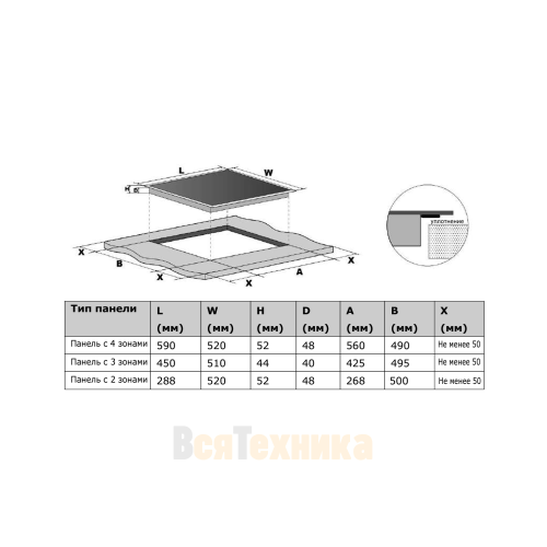 | Размеры ниши для встраивания (ШхГ) (см) | 56 x 49 |
