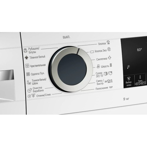 | Список программ | Антиаллергенная/Деликатная/Джинсы/Отжим и слив/Полоскание/Предварительная/Пух/Рубашки/Ручная стирка/Синтетика/Смешанные ткани/Спортивная обувь/Хлопок ЭКО/Шелк/Шерсть |