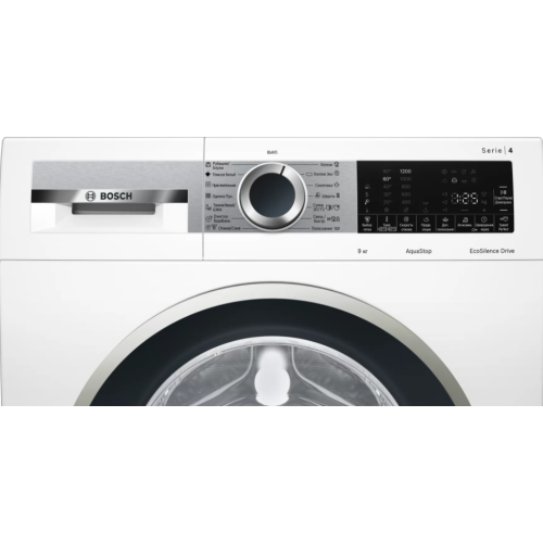 | Индикация | Времени до окончания стирки/Максимальной загрузки для выбранной программы/Хода программы |