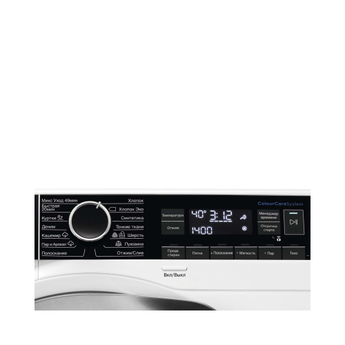 | Индикация | UltraCare/Отключения отжима/Блокировки дверцы/Блокировки управления и Wi-Fi/Добавления белья/Максимальной загрузки/Обработка паром и антисминание/Наличия соли/Очистки барабана/Скорости отжима/Температура и холодная вода/Удаленного подключения/Цифровой индикатор |