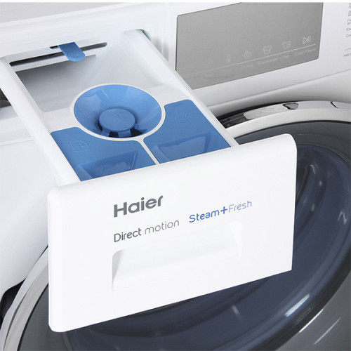 В отличие от традиционных моделей с ременным приводом, двигатель Haier напрямую соединен с барабаном. Это решение обеспечивает не только тихую работу, но и повышенную долговечность, меньшую вибрацию и более точное управление движениями барабана для бережного обращения с тканью.