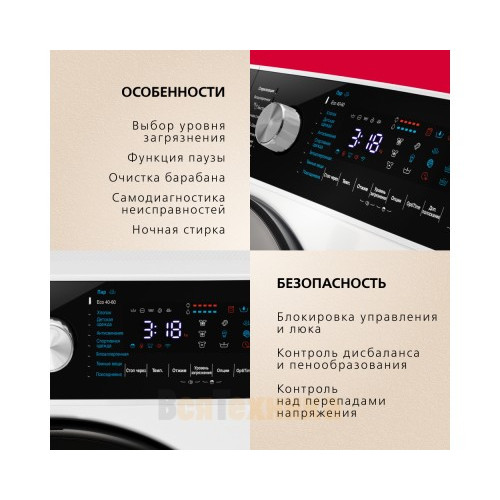 - Продуманная система защиты: Частичная защита от протечек (Aqua-Stop на заливном шланге) обезопасит ваш дом от непредвиденных ситуаций.