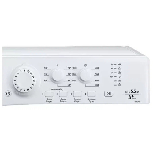 Стиральная машина с фронтальной загрузкой Hotpoint-Ariston VMSL 501 B использует в работе 16 программ, которые позволяют с легкостью справляться с самыми стойкими загрязнениями на хлопковых, шерстяных, шелковых и синтетических изделиях. Предусмотрена возможность регулировать установки: уменьшить количество оборотов при отжиме, изменить время цикла и температуру воды. Это способствует бережному отношению к вещам. Потребляя 49 литров воды за один цикл, устройство способно очистить до 5.5 кг белья. Безопасность использования модели обеспечивает ряд опций. Если вещи при стирке спутались, барабан за счет движения в обратную сторону равномерно располагает их по поверхности, снижая за счет этого уровень шума и вибрации. В случае, когда в машину загружено слишком много моющего средства, излишки пены начинают откачиваться, включается дополнительное полоскание и частицы порошка полностью вымываются из ткани.