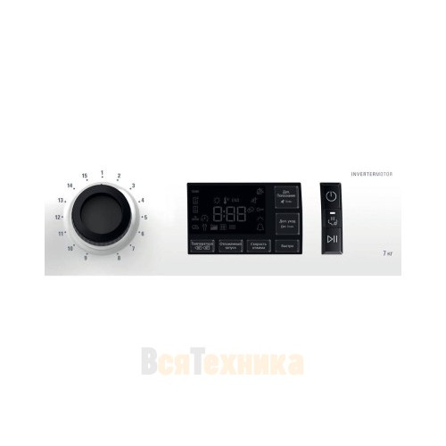 - Инверторный двигатель Direct Motion: Отсутствие щеток и ремней делает двигатель более долговечным, тихим и энергоэффективным. Он обеспечивает плавное вращение барабана даже при отжиме на максимальных 1400 оборотах в минуту, что гарантирует почти сухое белье после стирки.