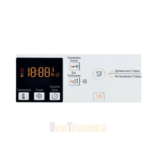 - Эргономичный дисплей и ручка управления: Интуитивно понятный интерфейс позволяет легко выбрать нужную программу и отслеживать этапы стирки.