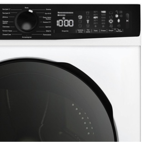 - Цифровой дисплей и электронное управление: Интуитивно понятный интерфейс отображает всю информацию: оставшееся время, выбранную программу, параметры стирки.