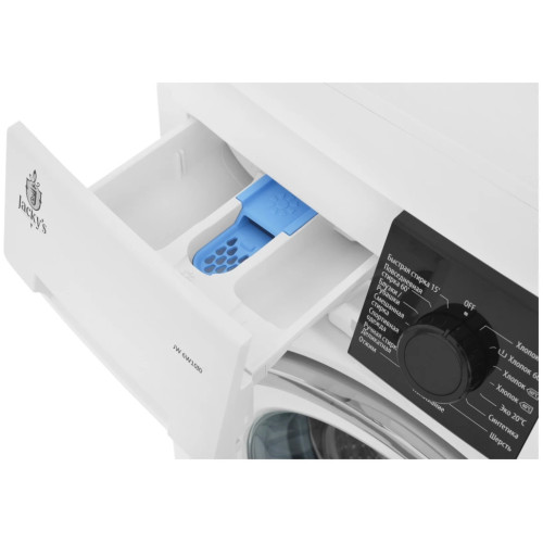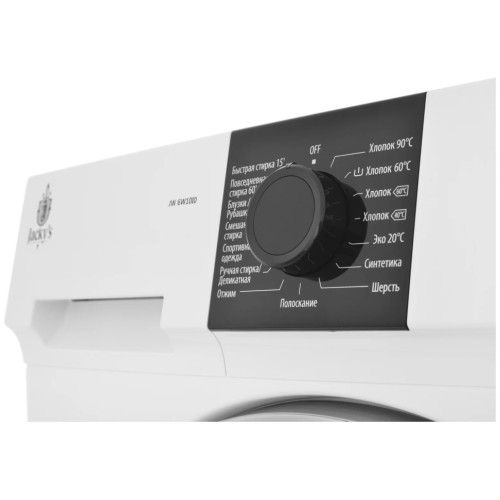 Стиральная машина Jacky’s JW 6W10I0 с загрузкой 6 кг и скоростью отжима до 1000 оборотов в минуту. Великолепная модель, сочетающая в себе лаконичный английский дизайн и непревзойденное европейское качество. В каждой стиральной машине есть 15 программ, которые справятся с любой поставленной задачей и это помимо дополнительных функций. Любое загрязнение не страшно стиральным машинам Jacky’s. Индикатор цикла стирки позволяет осуществлять необходимые настройки режима, а также контролировать процесс стирки и видеть информацию о каждом этапе. Такой барабан рассчитан на длительный срок эксплуатации. Независимо от того, какое белье вы стираете, благодаря гладкой, блестящей поверхности барабана стирка вашей одежды будет бережной и деликатной. Неравномерная стирка может привести к повреждению барабана машины. Система управления дисбаланса аккуратно перераспределяет содержимое барабана, обеспечивая равномерную стирку и отсутствие повреждений. ECO Logic. Данная функция способствует определению половинной загрузки белья. Если стиральная машина загружена менее, чем на 50%, происходит автоматическое включение режима экономии электроэнергии, так как время стирки сокращается. Функция половинной загрузки достаточно удобна, когда необходимо постирать небольшое количество вещей, но важно, чтобы стирка была качественная, деликатная и менее электрозатратная. Увеличенный размер дверцы стиральной машины. Вам больше не придется изо всех сил пытаться вытащить белье через дверь вашей стиральной машины. Супер большая дверь значительно упрощает стирку постельных принадлежностей или одеял. Возможность выбора температуры стирки исходя из типа белья, тем самым каждая программа может быть идеально настроена под ваши цели. Ключевые особенности модели - 15 программ: каждая из них задает алгоритм действия стиральной машины, исходя из конкретной поставленной задачи (определенная температура воды, время стирки и замачивания, скорость вращения барабана и др. параметры в зависимости от вида изделия, его материала и степени загрязнения). - Выбор скорости отжима. Скорость можно выбирать соответствующей программой, а также с помощью ручного регулирования. - Выбор температуры — стиральная машина позволяет ручное регулирование температуры воды. Это позволяет вам подобрать необходимую температуру для конкретного изделия. - Отсрочка старта — возможность отложить начало стирки на боле удобное для вас время. Как правило, отсрочка составляет от 10 минут до суток (23 часа 50 минут).