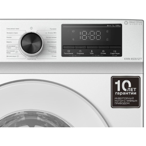 Узкая стиральная машина KWM 45DS1277 с функцией паровой обработки имеет глубину 49,2 см, что делает её отличным выбором для компактных пространств. При этом она способна загружать до 7 кг белья и обеспечивает скорость отжима до 1200 оборотов в минуту. Прибор оснащён LED-дисплеем и сенсорным управлением, предлагая 15 различных программ. В процессе работы предусмотрена возможность разблокировки дверцы для добавления белья. Функция предварительной стирки предназначена для удаления сильных загрязнений, избавляя от необходимости замачивания. Обработка паром может быть активирована по завершении основной программы. Машина нагревает воду до 80 градусов, после чего пар поступает в барабан. Пар делает ткани более мягкими и уменьшает количество складок, облегчая глажку. Функция защиты от детей позволяет заблокировать управление машинкой во время работы. Система адаптивного залива автоматически определяет нужное количество воды в зависимости от объема и впитывающей способности белья, а контроль пенообразования обеспечивает оптимальное использование моющих средств, предотвращая избыточное пенообразование и гарантируя качественное отстирывание. Контроль баланса отвечает за равномерное распределение белья в барабане и устраняет дисбаланс, если он возникает. Функция отложенного старта до 24 часов позволяет задать время начала стирки. Инверторный мотор обеспечивает тихую работу, долговечность и экономию электроэнергии. Особенности: Адаптивный контроль залива воды В зависимости от количества белья и его способности впитывать влагу, объем воды, необходимый для стирки, может отличаться. Благодаря системе адаптивного залива, стиральная машина самостоятельно определяет, какое количество воды необходимо, а также оптимизирует время и потребление энергии, что помогает оптимально использовать ресурсы. Функция «Отложенный старт» В некоторых случаях необходимо отложить включение прибора на несколько часов, чтобы, например, сэкономить на тарифах электроэнергии или завершить процесс к определенному времени. Отложенный старт позволяет запрограммировать прибор на автоматическое включение в нужное время. Функция предварительной стирки При сильных загрязнениях больше нет необходимости в замачивании белья. Достаточно активировать функцию предварительно стирки, добавить моющее средство в соответствующий отсек диспенсера, и дальнейшее «замачивание» с последующей стиркой начнется автоматически. Контроль пенообразования В случае излишнего пенообразования в баке, например, из-за неправильно выбранного типа или количества моющего средства, а также при стирке тканей с большим количеством микроотверстий, стиральная машина самостоятельно настроит длительность и количество полосканий для полного устранения пены и остатков моющего средства в ткани. Контроль баланса барабана В процессе отжима стиральная машина контролирует, насколько равномерно белье распределено по поверхности барабана и в случае возникновения дисбаланса самостоятельно устраняет его, используя особый алгоритм вращения. В особых случаях, когда дисбаланс не удалось устранить, стиральная машина отключит цикл отжима, тем самым предотвращая сильный шум и вибрации. Функция Пара Стиральная машина с функцией пара набирает воду по окончанию основной программы и нагревае