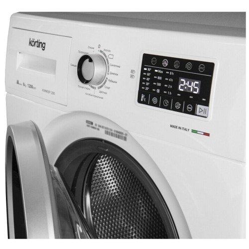 Тип:Отдельностоящая техникаТип загрузки:ФронтальнаяЦвет:БелыйВарианты цвета:Белый СеребристыйОсновной режим:СтиркаГлубина (см):55Загрузка (кг):8Загрузка при сушке (кг):-Скорость отжима (об/мин):500/800/1200Управление:ЭлектронноеДисплей:ЦифровойСтирка:15Программы стирки:Хлопок Хлопок Эко Синтетика Джинсы Рубашки Спорт Цветное Антибактериальная Ручная стирка Быстрая Шерсть Смешанное Шелк Полоскание ОтжимПрограммы сушки:-Отложенный старт (ч):до 8Автоматическая блокировка дверцы:ДаБлокировка панели управления:-Диспенсер для жидких моющих средств:ДаКонтроль баланса барабана:ДаАвтопозиционирование барабана:-Плавное открытие створок барабана:-Дополнительные особенности:-