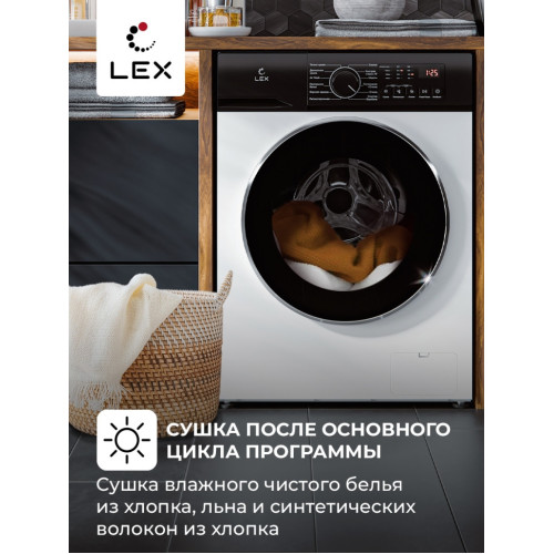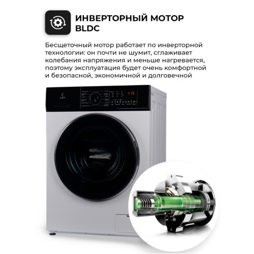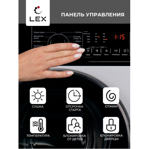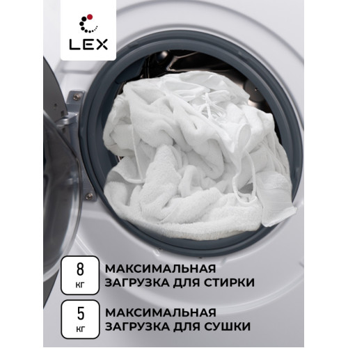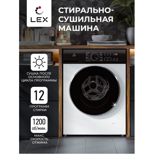 Модель LWM08512WID объединяет два устройства — стиральную и сушильную машины — в одном компактном корпусе. Сотовый профиль барабана позволяет мягко обрабатывать любые вещи и экономно расходовать воду. Энергоэффективный и устойчивый к колебаниям напряжения мотор не перегревается, что продлевает срок службы стиральной машины. Пользователю доступны разные режимы сушки, гипоаллергенная стирка, обработка паром, программы для тканей, которым нужен специальный уход, а также функция автоматической чистки барабана. Все параметры удобно настраивать на понятной панели управления с дисплеем. Тип Отдельностоящий Цвет Белый + черный Тип загрузки Фронтальная Управление Электронное Дисплей Да Кол-во программ 12 Режим сушки Да Антибактериальная стирка Да Очистка барабана Да Функция очистки паром STEAM WASH Да Отложенный старт 24 ч Класс стирки A Класс сушки/отжима 1200 об/м – A Максимальная загрузка для стирки 8 кг Максимальная загрузка для сушки 5 кг Максимальная скорость отжима 1200 об/мин Уровень шума 60 дБ Функция блокировки Да Класс энергопотребления A+++ Энергопотребление в год 205,7 кВт Номинальная мощность в режиме отжима – 520 Вт, в режиме стирки – 200 Вт, в режиме сушки – 1500 Вт Тип двигателя Инверторный, BLDC Длина сетевого кабеля 150 см. Глубина, см 60 Размер устройства (ВхШхГ) 850x595x600 мм Размер упаковки 660×670×885 мм Вес в упаковке / без упаковки 63 кг/67 кг