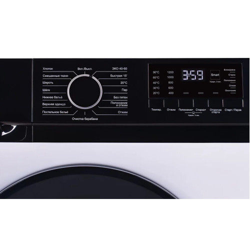 Эта модель имеет высокую скорость отжима и вместительный барабан с функцией самоочистки. Его конструкция помогает экономно расходовать воду и долго сохранять ваши вещи в прекрасном состоянии. Стиральная машина с большим выбором программ одинаково хорошо справится с пятнами как на летнем платье, так и на теплом пледе, бережно очистит особенно «капризные» ткани. Также у модели есть удобный интеллектуальный режим: просто положите вещи в барабан и нажмите кнопку Smart на панели управления — и машина сама установит все параметры. Для быстрой стирки нужно всего 15 минут, а благодаря паровой обработке на одежде будет меньше складок. Современный инверторный двигатель работает быстро и эффективно, поэтому стиральная машина имеет лучший класс энергопотребления.