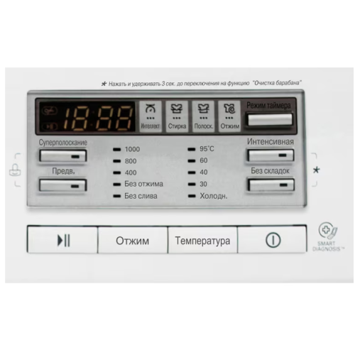 | Индикация | Времени программы/Времени отложенного старта/Завершения программы/Скорости отжима/Температуры |