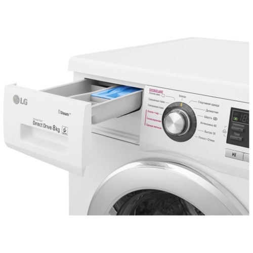 Современная, отдельно стоящая стиральная машина с надежным прямым приводом LG F1296TDS3. Возможность погрузки белья до 8кг. Классический дизайн и небольшие размеры помогут вписаться в любой интерьер. Интуитивно понятный цветной дисплей на русском языке поможет легко и быстро разобраться с функциями машины. Открывание дверцы, расположенной на фронтальной части машины возможно до 180 градусов, что делает погрузку белья максимально комфортной. Во время регулируемого отжима барабан развивает скорость до 1200 оборотов в минуту. Предусмотрена отсрочка старта запуска стирки до 19 часов. Значительно снижает шум и вибрации контроль дисбаланса, что делает эксплуатацию машинки максимально комфортной. Класс энергопотребления А сбережет семейный бюджет. Защита от детей и контроль над уровнем пены позволит во время стирки заниматься своими делами. Большой выбор функций и выбор температурного режима сохранит даже самые привередливые ткани.