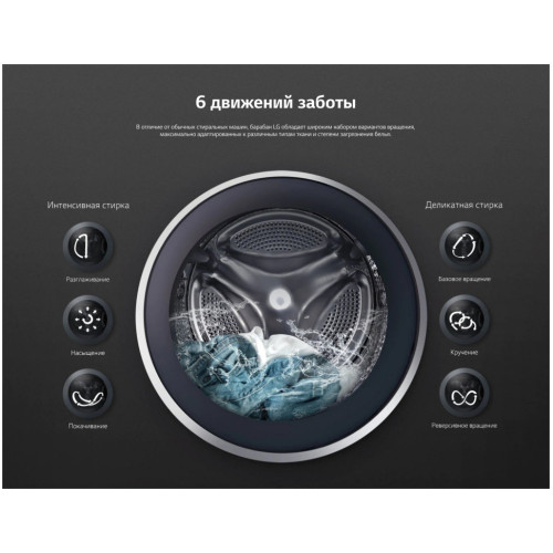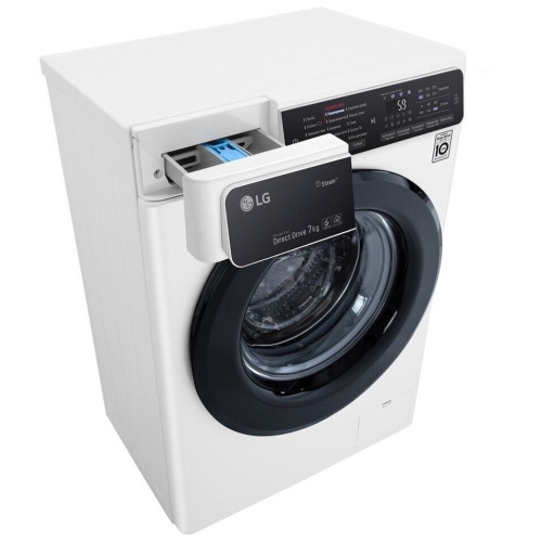 Стиральная машина LG F2H5HS6W – удачный выбор для семьи из трёх-четырёх. Барабан этой модели вмещает 7 кг белья, что позволит за один раз привести в порядок пару комплектов постельных принадлежностей или решить проблему ухода за объёмными вещами: покрывалами, пледами, банными халатами и т.п. Кроме традиционных программ для стирки хлопковых и смешанных тканей, есть режимы по типу белья: для спортивной и детской одежды, пуховых изделий и пр. Функция Steam позволяет обрабатывать вещи горячим паром. Он устраняет бактерии, дезинфицирует, избавляет от неприятных запахов и особенно пригодится людям с чувствительной кожей и аллергикам. Функция «Интенсивная стирка» поможет справиться с самыми сложными загрязнениями, «Дополнительное полоскание» вымоет из волокон тканей все остатки моющих средств, «Без складок» предотвратит сильное сминание белья и облегчит его последующее глажение. Программа уже запущена, а вы обнаружили забытую футболку? Нет необходимости откладывать её на следующий раз, так как вещи можно добавлять в барабан в процессе работы прибора. Эта модель оснащена инверторным мотором с прямым приводом. В его конструкции нет щёток и ремня, за счёт чего повышается устойчивость к износу, снижается уровень шума и уменьшается потребление электроэнергии. Стиральной машине присвоен соответствующий класс А, поэтому она не станет причиной серьёзного роста счетов «за коммуналку». При возникновении каких-то неполадок система SmartDiagnosis поможет выявить причину проблемы, используя ваш смартфон. Это сэкономит время и средства: сервисный центр получит специальные коды, и мастер заранее будет знать, какая деталь нуждается в замене.